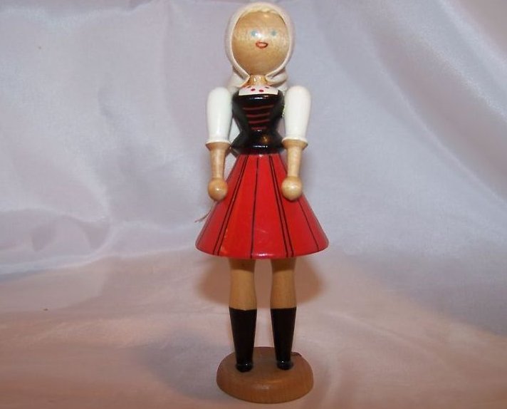 Wooden Wood Girl Doll w Head Scarf on Stand